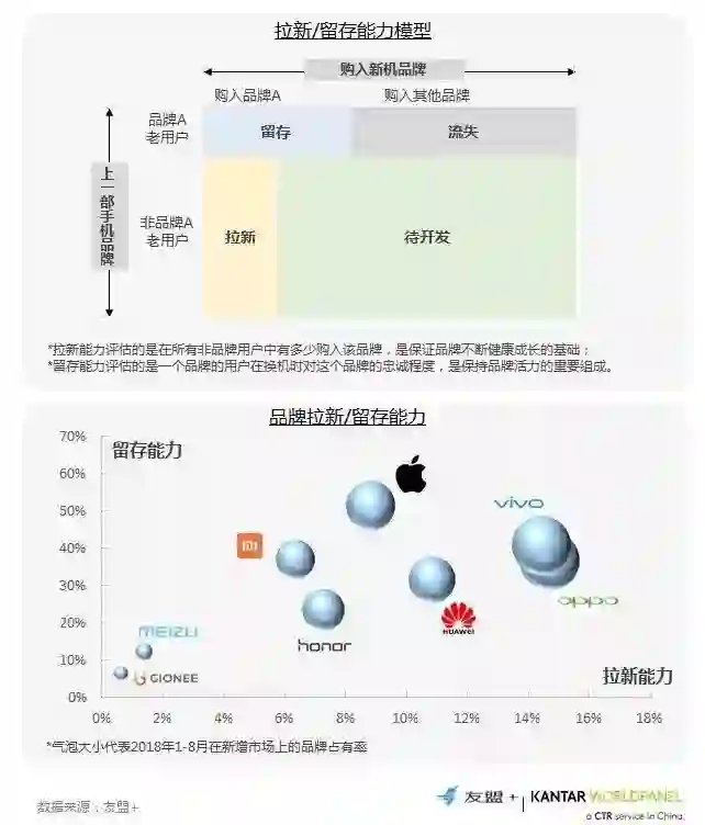 1、OPPO与vivo拉新能力最强,苹果留存虽下滑但整体留存能力仍较强