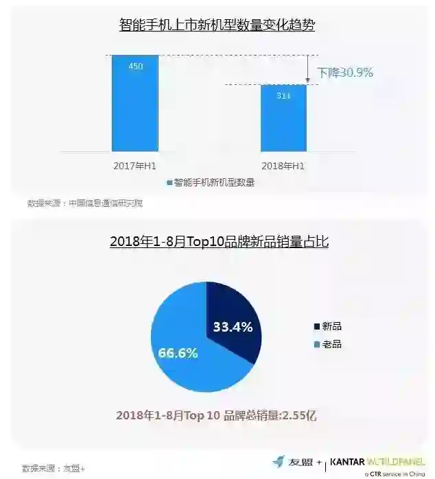 1、2018年新机发布数量减少,从Top10品牌市场表现来看,新品总体拉动了品牌方33%的业务增长