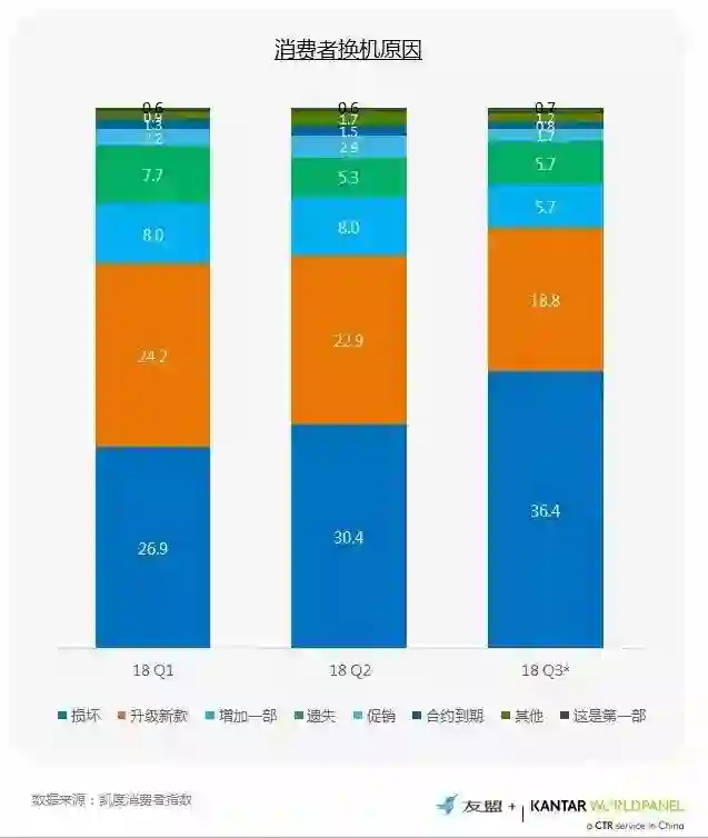 3、消费者主动升级新机的比例降低,被动换机的比例升高