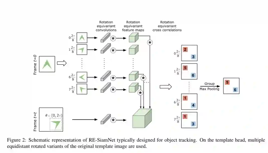 摘要:旋转是视觉目标跟踪中长期存在但尚未解决的艰巨挑战之一。现有的基于深度学习的跟踪算法使用常规的CNN,这些CNN本质上是平移不变的,它们并没有解决旋转问题。在本文中,我们首先证明在视频中存在旋转实例时,现有跟踪器的性能会受到严重影响。为了避免旋转的不利影响,我们提出了等速旋转孪生网络(RE-SiamNets),该网络是通过使用包含可控滤波器的等分组卷积层构建的。SiamNets允许以无监督的方式估计目标方向的变化,从而也方便了其在相对2D姿势估计中的使用。我们进一步表明,通过对两个连续帧之间的方向变化施加限制,这种方向变化可以用于在孪生(Siamese)跟踪中施加附加的运动约束。为了进行基准测试,我们展示了旋转跟踪基准(RTB),它是一个包含一组带有旋转实例的视频的数据集。通过对两种流行的孪生体系结构进行的实验,我们证明RE-SiamNets很好地解决了旋转问题,并且性能优于常规同类产品。此外,RE-SiamNets可以以无监督的方式准确估算目标姿势的相对变化,即目标相对于参考框架的平面内旋转。