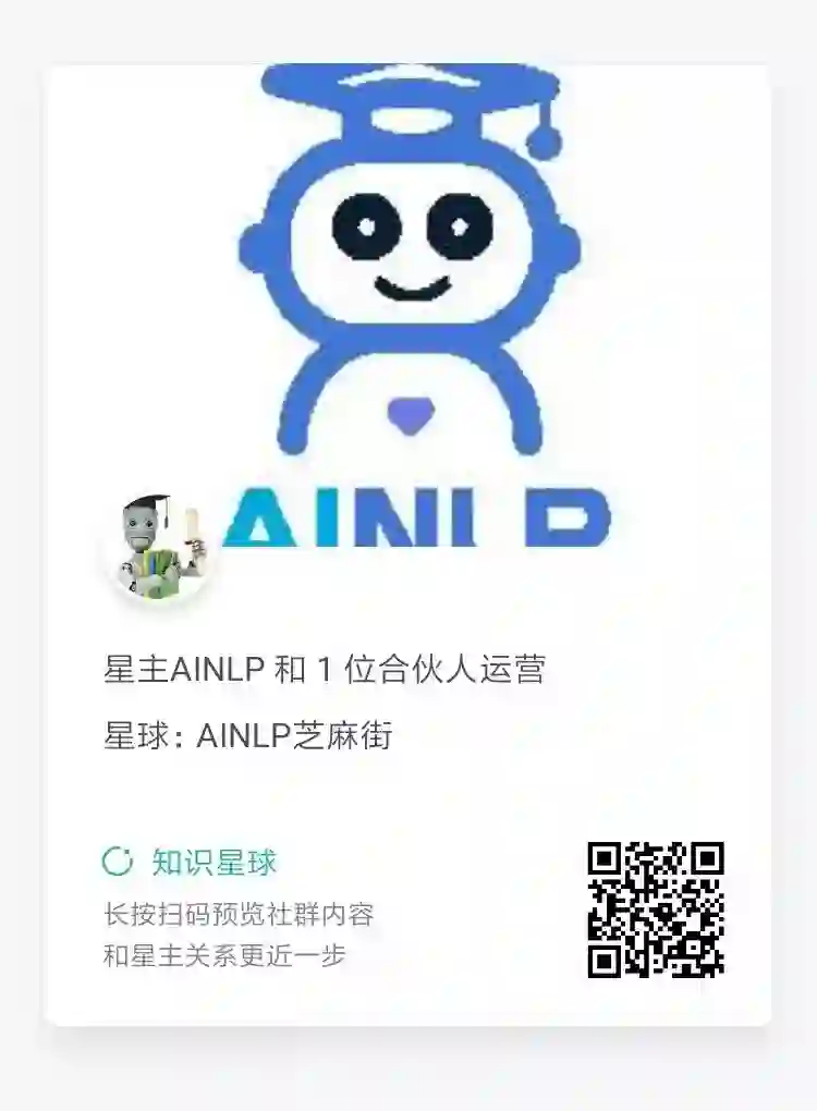 AINLP 是一个有趣有AI的自然语言处理社区,专注于 AI、NLP、机器学习、深度学习、推荐算法等相关技术的分享,主题包括文本摘要、智能问答、聊天机器人、机器翻译、自动生成、知识图谱、预训练模型、推荐系统、计算广告、招聘信息、求职经验分享等,欢迎关注!加技术交流群请添加AINLP君微信(id:AINLP2),备注工作/研究方向+加群目的。