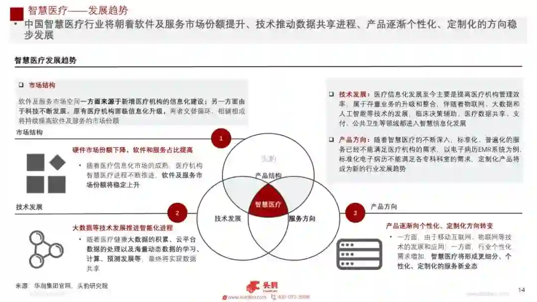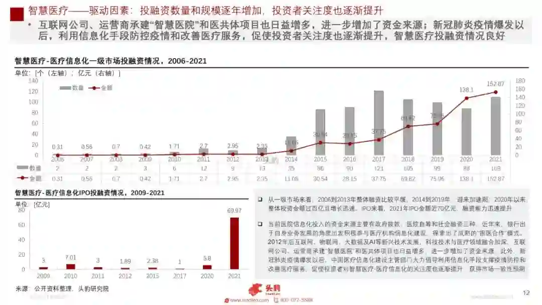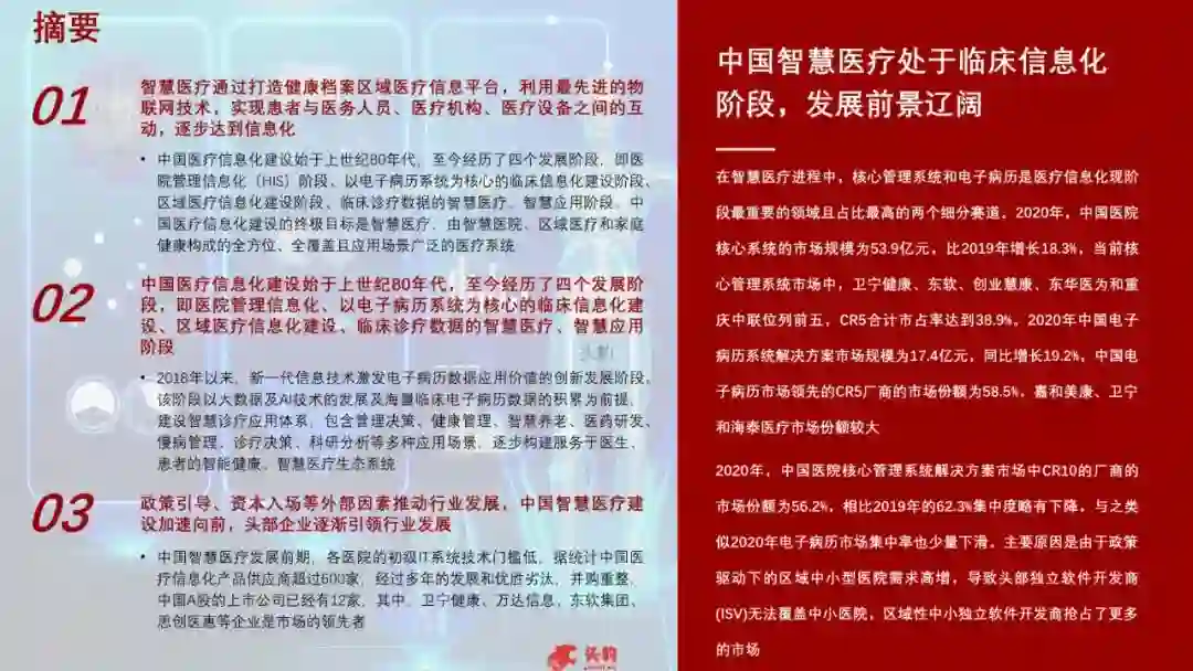 政策引导、资本入场等外部因素推动行业发展,中国智慧医疗建设加速向前,头部企业逐渐引领行业发展