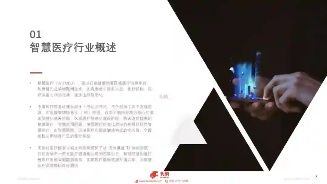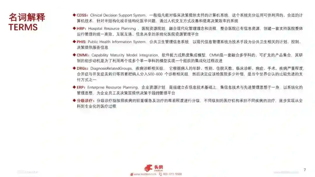 中国医疗信息化建设始于上世纪80年代,至今经历了四个发展阶段,即医院管理信息化、以电子病历系统为核心的临床信息化建设、区域医疗信息化建设、临床诊疗数据的智慧医疗、智慧应用阶段头豹