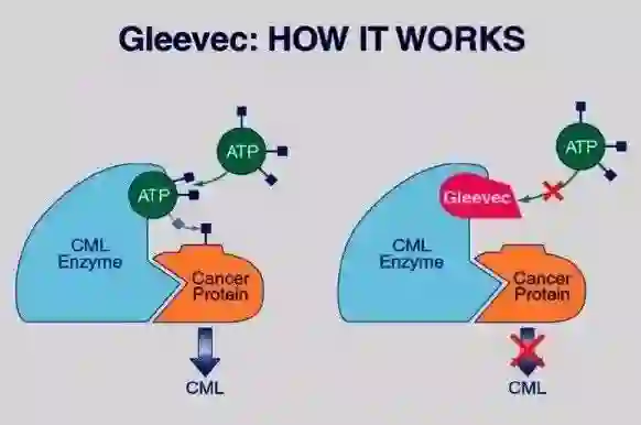它之所以能成功,除了科学家的努力以外,还在于慢粒白血病的特殊。它只由染色体易位相关的单一异常蛋白引起,所以科学家能够将所有的精力集中在单一的目标上。