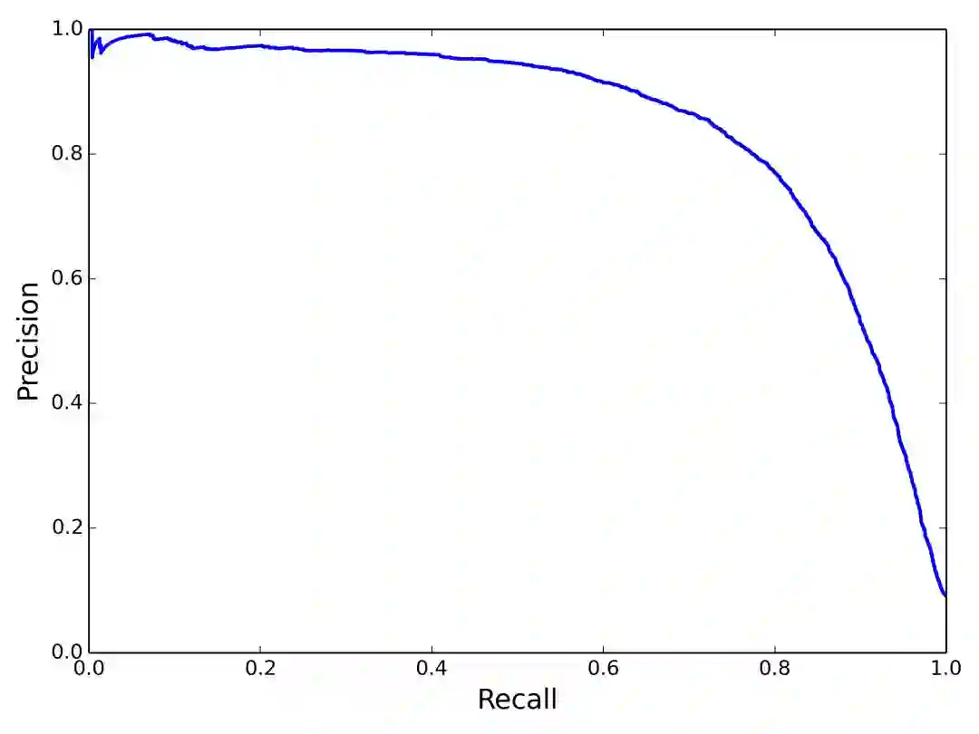 通常召回率越高,精确度越低,根据不同的值可以绘制Recall-Precision曲线,如下。