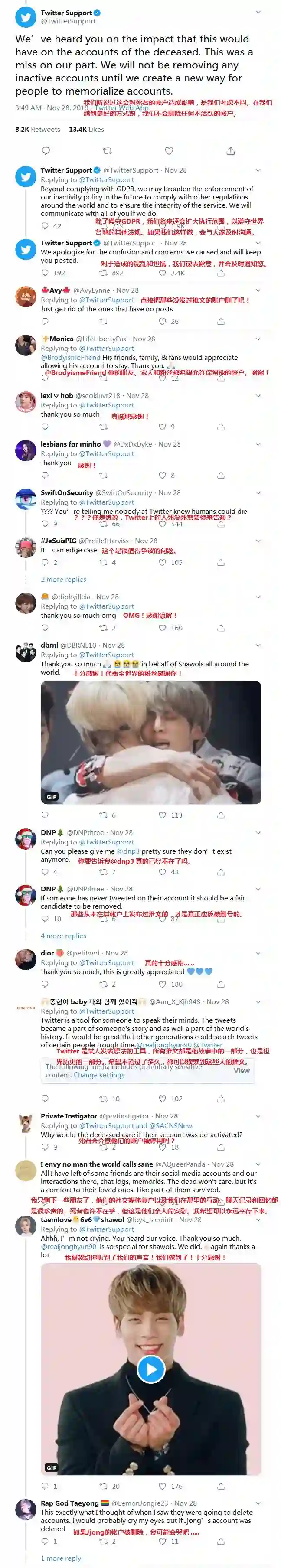但是此事却引发了一个问题:对于已去世的用户,如果账号没有托管,显然不可能再次登录。在活跃用户反应了这一问题后,Twitter 宣布搁置删除账号的计划,并称在寻找到更好的方案前不会删除任何不活跃用户的账号。