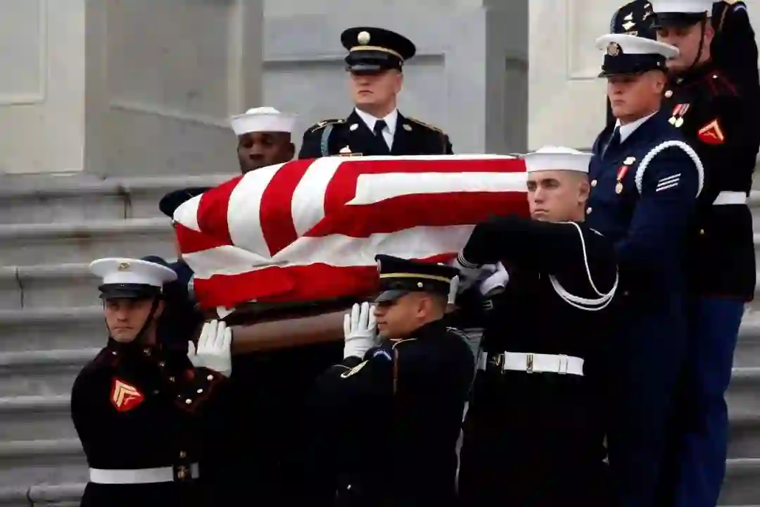 21响礼炮齐鸣之后,他的灵柩被放入黑色的凯迪拉克车,车队从国会出发,沿着宾夕法尼亚大街行驶,路过了降半旗的白宫,十几分钟后抵达了国家大教堂。这天是一周内最冷的一天,车外气温逼近零度。