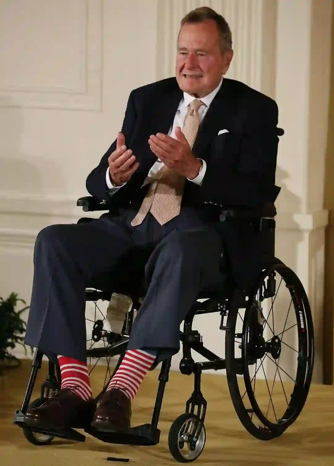 彩色袜子是他的爱物。2007年,老布什被诊断出患有血管性帕金森病,影响了他的行走能力,长期坐在轮椅上,他的脚踝始终可见。他的女儿多萝西·布什在《我的父亲、总统,乔治·H·W·布什个人生活纪录》一书中提到:「穿着色彩缤纷的袜子是他在行动不便的情况下,寻找生活乐趣的方式之一。」