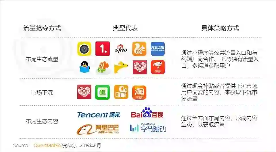 这可能要从整个移动互联网的发展大环境来看。经过多年高速发展后,中国移动互联网发展红利基本殆尽。QuestMobie数据显示,截止今年4月份,中国移动互联网月活跃用户规模达到11.36亿,同比增速达3.1%。这也是首次出现连续两个月环比下跌的情况。互联网公司之间的增量之争变为存量之争,用户数量增长变为用户时长之争。