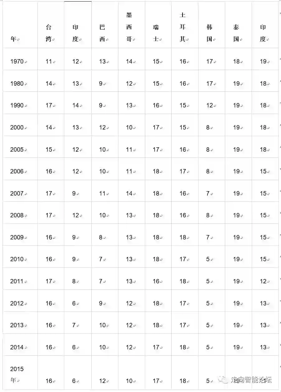 在过去的几十年里,大多数国家的制造业产出相当稳定,但自1970年以来出现了一些变化。例如,1970年,产出最高的国家是美国、苏联、日本、德国、中国、英国、法国、意大利和加拿大(见表4)。然而,到2015年,这一排名已经改变为中国、美国、日本、德国、韩国、印度、意大利、英国和法国。