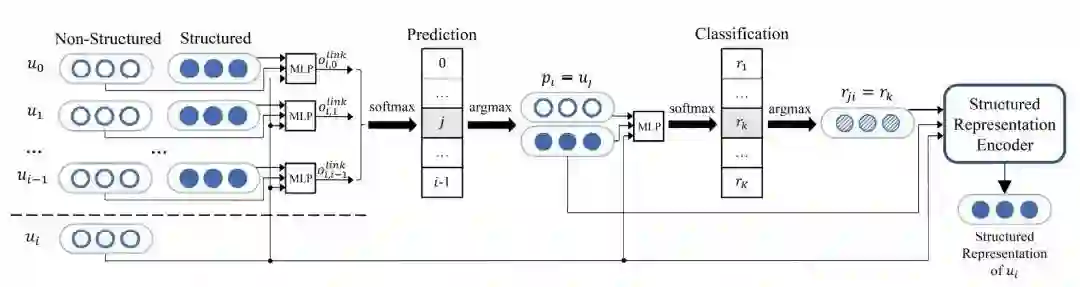 输入:,其中D 是一个多人对话的EDU序列,包含