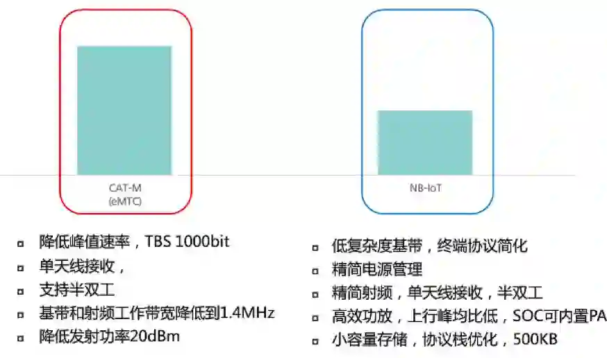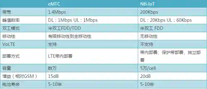 为了满足“3C”目标,NB-IoT和eMTC的实现方式也有不同之处,具体如下: