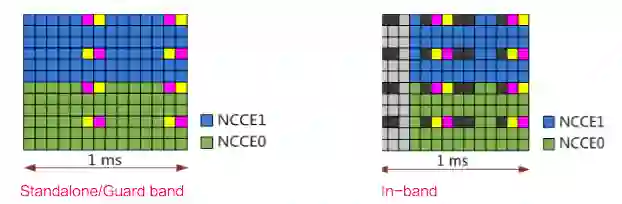 Stand alone和Guard band模式下,可使用所有 OFDM 符号,In-Band模式下,错开LTE的控制符号位置。NPDCCH有2种format: