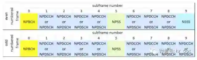 LTE的PDCCH固定使用子帧前几个符号,NPDCCH与PDCCH差别较大,使用的NCCE(Narrowband Control Channel Element,窄带控制信道资源)频域上占6个子载波。