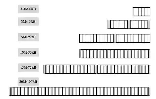 保护带部署利用LTE边缘保护频带中未使用的180KHz带宽的资源块。