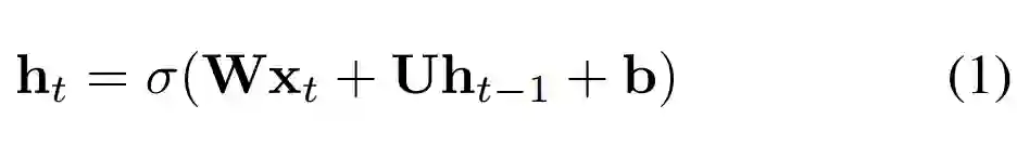 循环神经网络 (RNN) [16] 已在动作识别 [8]、场景标注 [4] 、语言处理 [5] 等序列学习问题中获得广泛应用,并且成果显著。与卷积神经网络 ( CNN ) 等前馈网络相比,RNN 具有循环连接,其中最后的隐藏状态是到下一状态的输入。状态更新可描述如下: