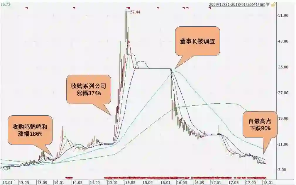 金亚科技尝到了甜头之后,策划了更大手笔的收购,先是在2015年初将“鸣鹤鸣和”的股权增持到51%,后来又以7000万的对价收购了宁毅手上的28%的股权,股价在此期间疯狂上涨374%。不过,这些热闹与茅侃侃无关,原因很简单:无论是上市公司,还是“鸣鹤鸣和”,他都没有股权。