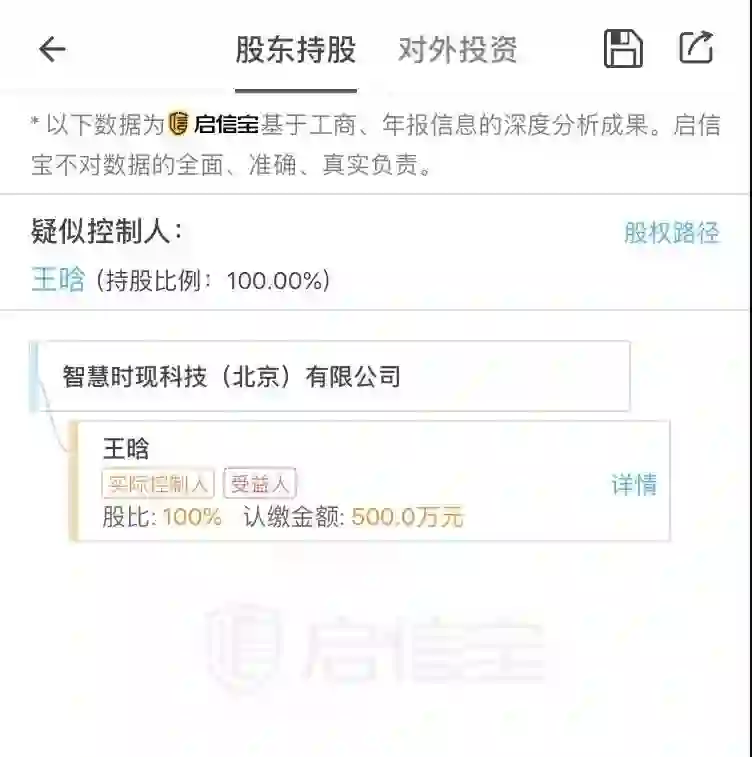 王晗发文的公众号主体是智慧时现科技(北京)有限公司,成立于2018年7月26日,今年2月11日完成微信认证。股东就一人,王晗百分百持股。