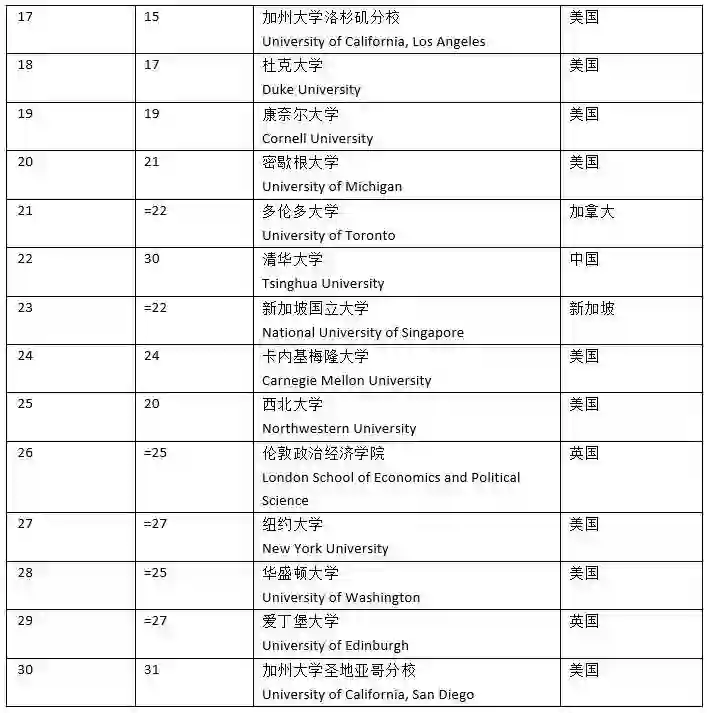 整体的高校分布来看,美国仍然是排行榜上入围高校数量最多的国家,入围高校数量从157所增加到172所。中国是亚洲高校中,入围数量最多的国家,从去年的63所高校增加到今年的72所高校,其中,有7所高校入围了前200名。值得一提的是,清华大学从去年的30名上升至第22名,并首次在全球排名中超越北京大学成为中国大陆新的第一名,北京大学下降四名,位列第31名。