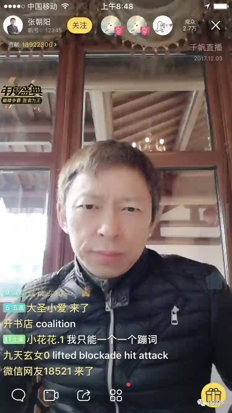 12月3日上午8点,在互联网大会开幕之前,张朝阳跟往常一样,在千帆直播进行英语新闻直播。这被在乌镇当地采访的媒体记者捕捉到,很快在朋友圈刷屏并引起热议。一些记者感到好奇,认为他是在“营销”,可张朝阳的回答很平实。