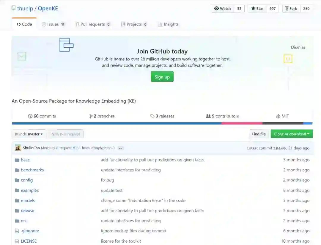 Github地址:https://github.com/thunlp/openke