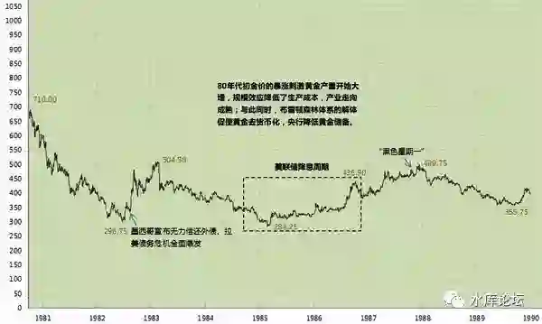 1981年,“炒黄金”冲到了$850美金高位,但很快就腰斩。