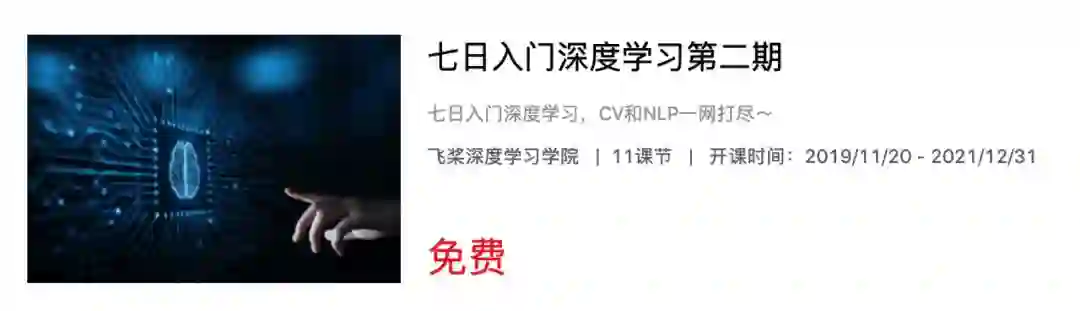 同时,新手课程还配套了视频课程,同样也是免费哦!七日入门深度学习免费打卡课!只要完成打卡就会有结业证书,完成测验即可获得最高1000元的京东卡哦~课程已经开了一期了,现在是第二期,快来报名吧!