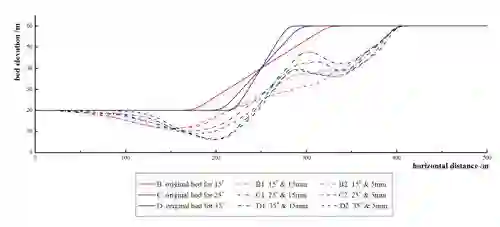 沟道纵剖面形态对泥石流侵蚀机理有重要影响。根据沟道纵剖面坡度是否均一,沟道形态可分为三种:均一坡度沟道、凹形沟道和凸形沟道。现有的泥石流侵蚀理论大多基于无限边坡模型,即认为坡度是不变的。实际中,沟道纵剖面的形态对泥石流侵蚀有着重要影响。比如,汶川地震灾区的文家沟泥石流,在纵剖面转折点处的侵蚀深度远超过其他部位。