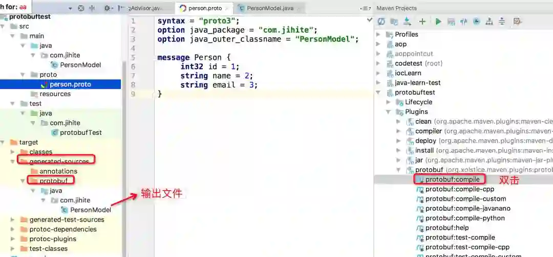 把生成的类考的代码路径下,用下面测试用例测试