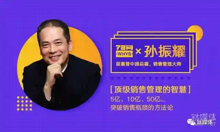 孙振耀在“钛媒体72问大学”的知识专栏《顶级销售管理的智慧》,每周一三五更新,七大主题模块、全年系统化课程,帮助你从细节到整体重新梳理管理销售的思路,仅需199元即可享受一整年的知识套餐~(完整内容请点击阅读原文订阅或下载最新版钛媒体APP体验更好哦)。