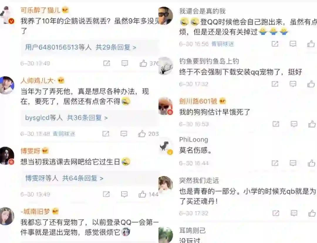 “真的没想到下一眼就是诀别,小胖鹅,再见了。”一位仍在玩着Q宠的贴吧吧友留言道。