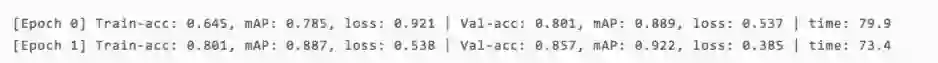 至此万事俱备,我们可以开始训练了!再次提醒,这里为了快速演示,我们只做两次循环,为了达到更好的训练效果请记得将epochs调大。