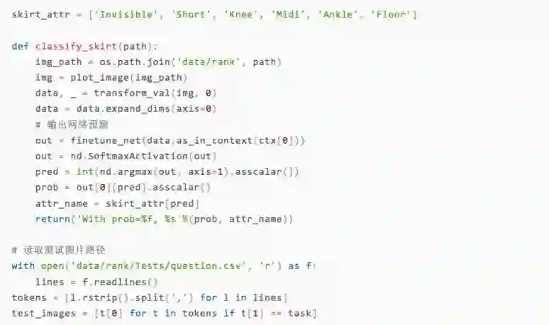 近期,阿里巴巴图像和美团队与香港理工大学纺织及制衣学系联合举办了2018FashionAI全球挑战赛,并在比赛中开放的FashionAI数据集,是首个围绕衣食住行中的“衣”的大规模高质量数据集。该数据集包含八种不同服饰的图片数据,选手们的任务之一就是设计一个算法对图片中服饰的属性做出准确判断。例如其中的裙子类图片,就分为不可见,短裙,中裙,七分裙,九分裙和长裙等总共六种属性。我们可以将其视为经典的图片分类问题,并通过卷积神经网络来解决。