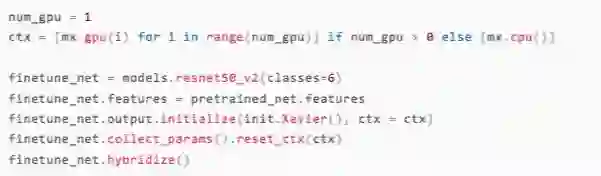 在ImageNet数据集上,大家主要用卷积神经网络,而在过去的几年中也出现了很多不同的网络架构。gluon官方提供了许多不同的预训练好的卷积神经网络模型,我们在这个比赛中选择效果比较好的resnet50_v2模型作为训练的出发点。关于迁移学习更详细的介绍可以参考gluon中文教程中的Fine-tuning:通过微调来迁移学习[6]一节。