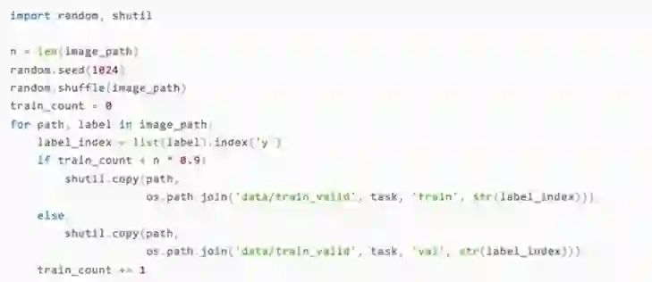 要想处理其他类型的服饰,只需要将task变量指定为对应的服饰类型名称就行了。最后,我们将图片复制到各自对应的目录中。需要注意的是,这里我们刻意随机打乱了图片的顺序,从而防止训练集与测试集切分不均匀的情况出现。