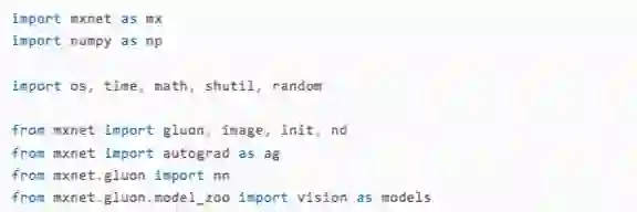就可以了。如果系统中安装的是CUDA8.0,可以将代码改成对应的mxnet-cu80。如果有同学想要使用其他的语言接口或者是操作系统,或者是自己从源码编译,都可以在官方的安装说明[4]中找到符合自己情况的安装步骤。在接下来的教程中,我们使用MXNet的python接口gluon带领大家上手此次竞赛。