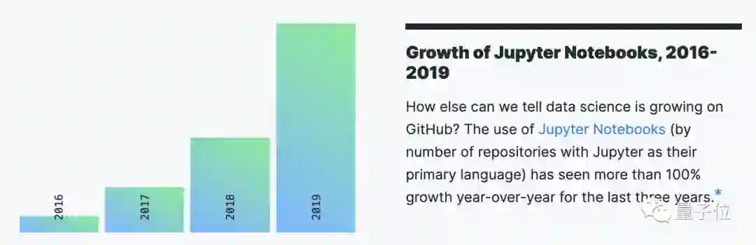 从2016年到2019年,Jupyter Notebook的使用量连续三年增长率都超过100%。