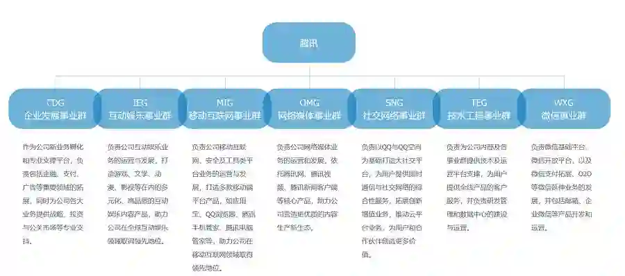 很明显的,这样的架构让腾讯内部形成了双重分工系统,横向是业务分工,纵向是决策分工。而系统-部-组的三层体系,让整个内部管理更为扁平化,决策效率有了极大的提高,且各部门根据市场环境发展的反应调整也更为轻便。