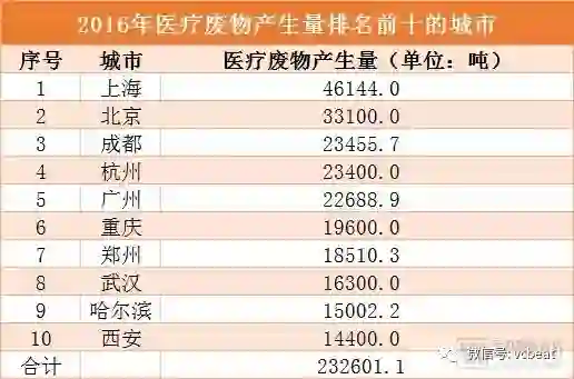 根据环保部发布的《2017年全国大、中城市固体废物污染环境防治年报》数据显示,2016年,214个大中城市医疗废物产生量72.1万吨,处置量72.0万吨,大部分城市的医疗废物处置率都达到了100%。