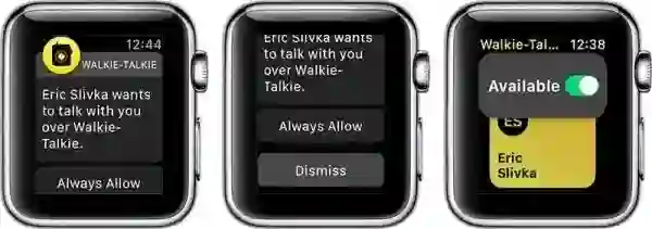 6月20日,苹果发布了 watchOS 5 第二个开发者测试版,对讲机功能(Walkie-Talkie)正式变得可用。完成更新,打开 Walkie-Talkie 应用后,可以看到联系人列表,选择后即可与某个特定联系人开始对话。当连接建立后,可以通过按住屏幕进行通信,经过简单测试,Walkie-Talkie 功能的通信比较清晰。