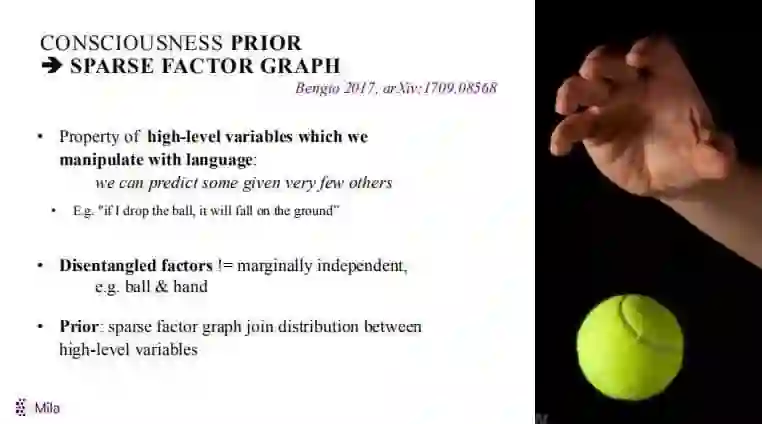Bengio还提到,“系统2”的两大关键是注意力和意识。注意力是近年深度学习发展的一个重要技术,目前已有大量的实现和探讨。而人类意识往往是先验的。他提出,这可以通过稀疏因子图(sparse factor graph)实现。稀疏因子图可用于学习变量间的因果关系,从而构造变量间的因果关系。