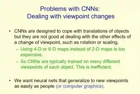 用Hinton的话讲,CNN就是"rubbish",问题很多,比如处理视角的变化、解析图像、对抗性例子等等。