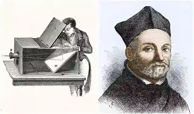 1558年,意大利人玻尔塔在《自然魔法》中详尽介绍了一种绘画用的暗箱。人们只要用铅笔将反射到画纸的影像轮廓加以描绘,再着色即可完成一幅具有真实感的画像。这表明欧洲人不仅仅执着于小孔成像的原理,并且希望通过某种技术将影像进行记录。1631年,德国耶稣会学者阿塔纳斯·珂雪出版了《伟大的光影艺术》一书,书中他描述了一种含有镜子和镜片的幻灯机的试验。而中国在这一时期也进行了影像保留的研究,17世纪皮影戏传播到了西欧。