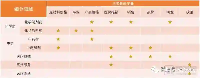 医疗领域各细分领域主要影响变量