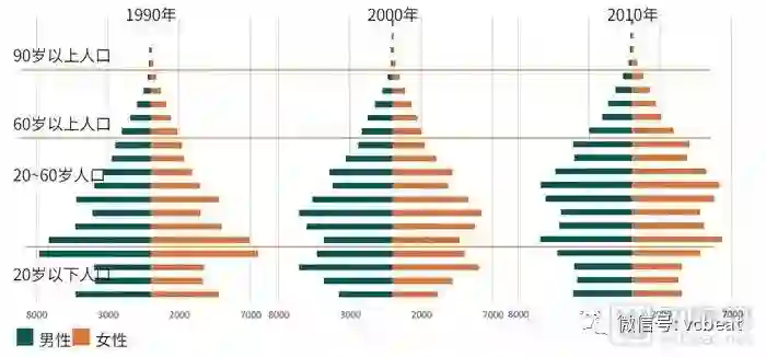 注:1柱状图从下往上分别是0~4岁、5~9岁以五岁为组的年龄段组;