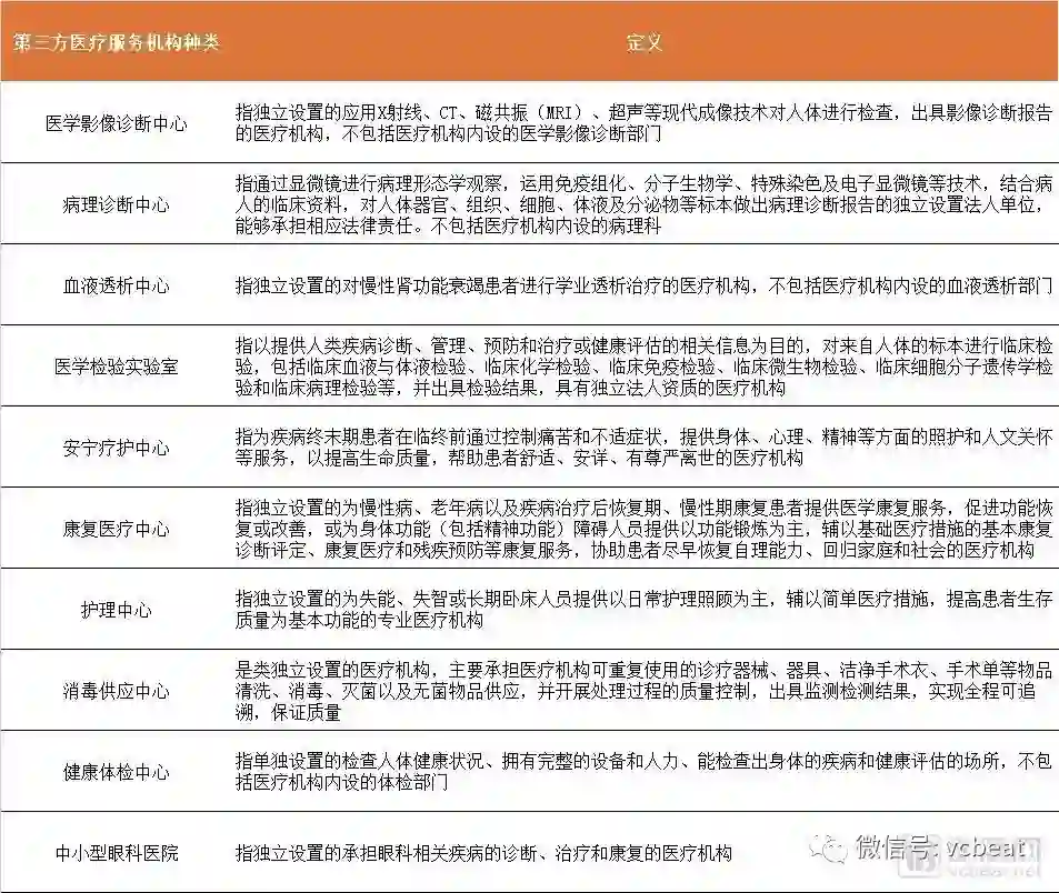 而第三方医疗服务机构稍有不同,因为根据官方的定义,它不仅包括传统意义上的医疗服务机构,而且包括向传统医疗服务机构提供辅助和支持性服务的医疗机构。
