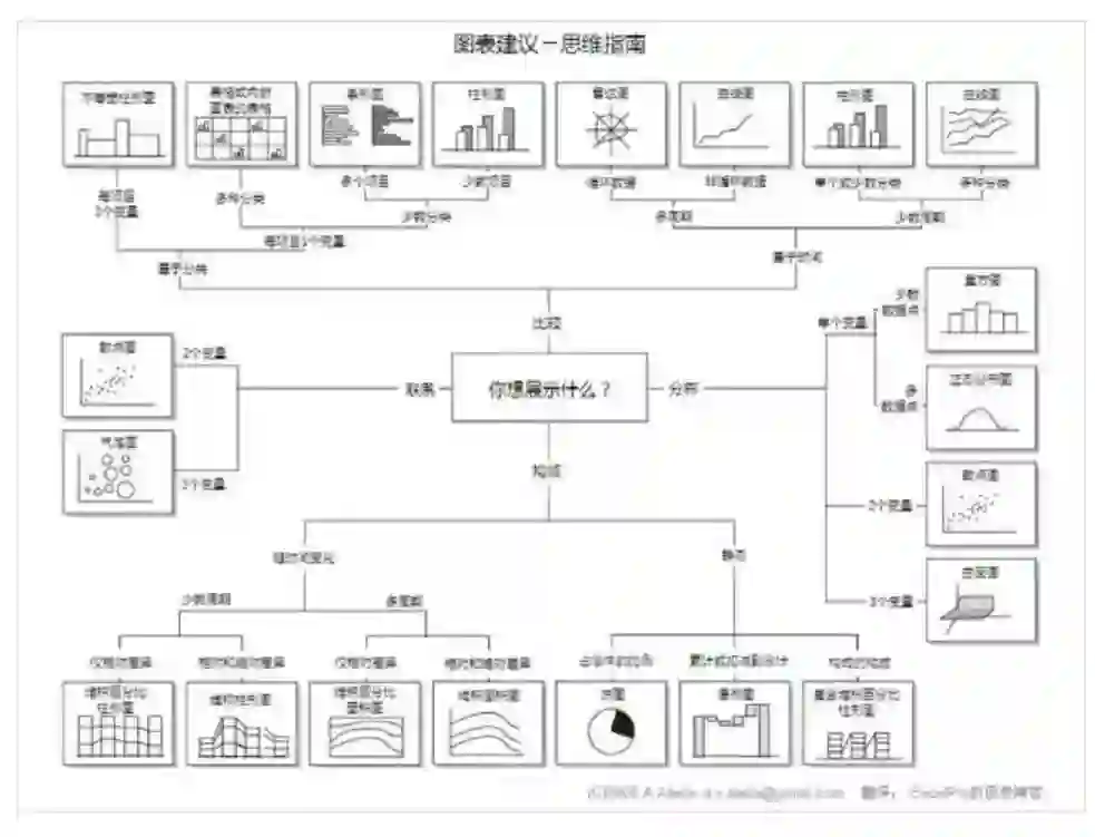 散点图、折线图、柱形图和直方图、饼图、面积图、雷达图、漏斗图
