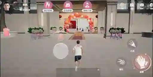 采用半写实画风的美术风格,全方位 1:1 高度还原线下实体酒店、线下婚宴实景,为增添现场动态感还有浪漫礼花特效;
