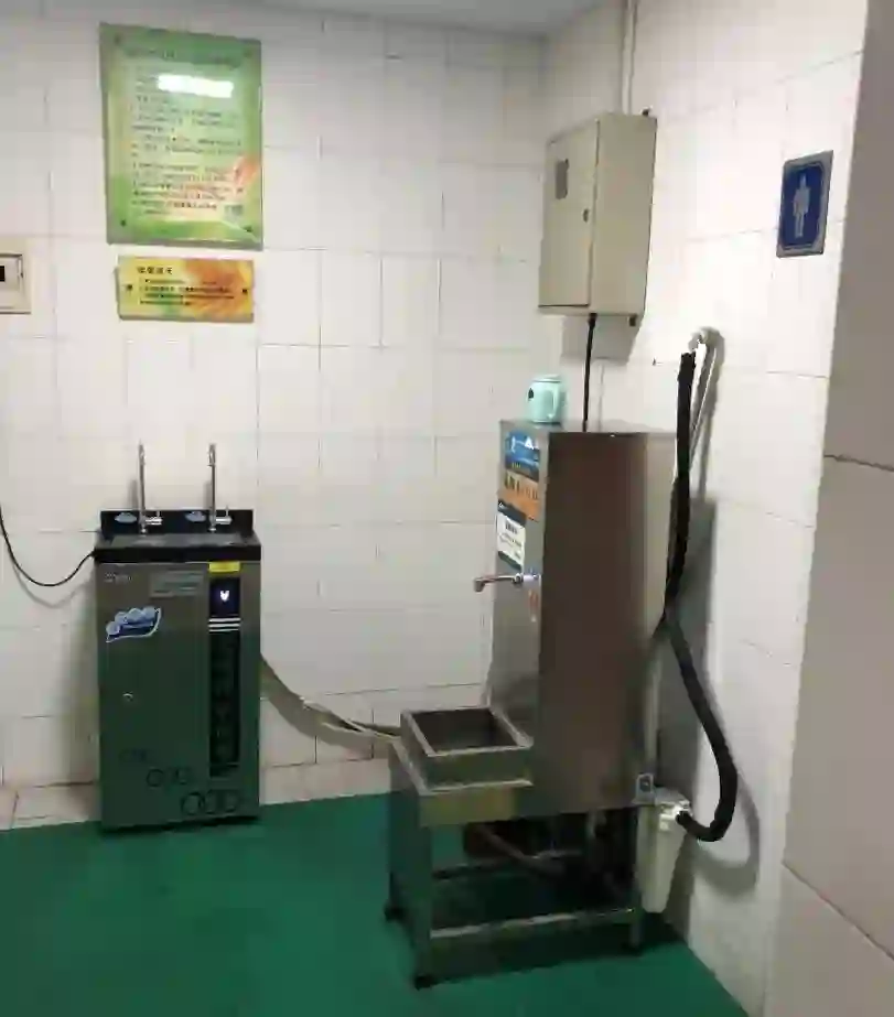 果不其然,当我按下按钮取到水之后,大叔看到我这么做,他也来取水了。