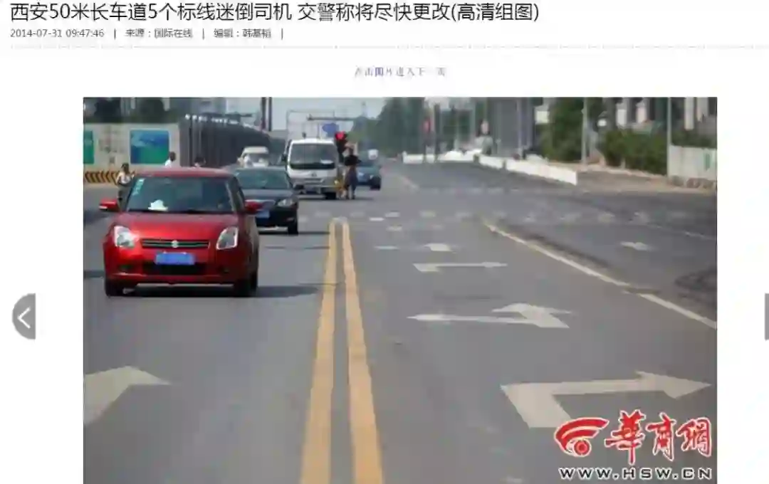西安,50米长车道5个标线,司机迷倒,我也晕倒。